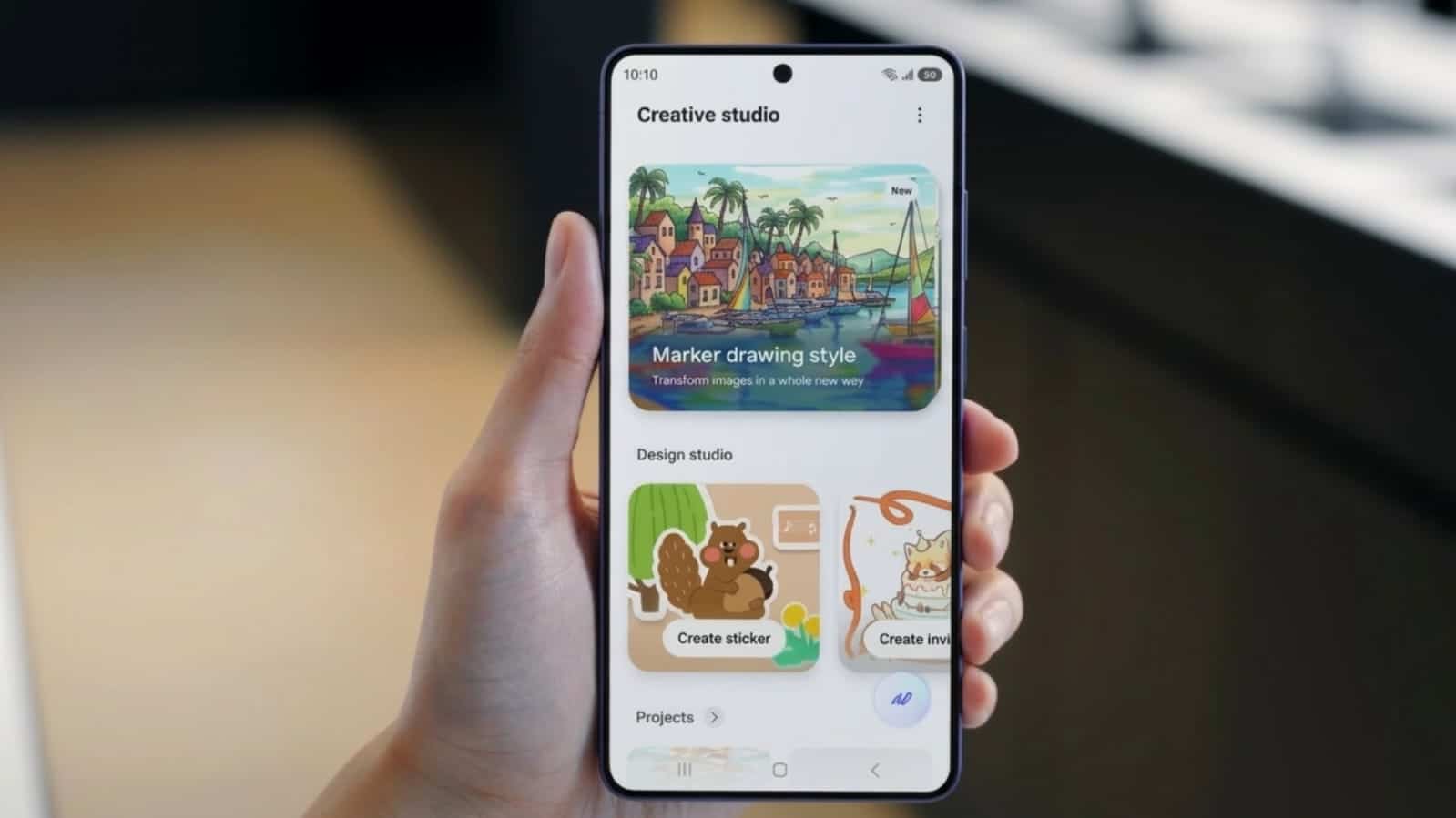 Creative Studio menjadi ruang kreasi terpadu di Galaxy S26 Series. Dengan bantuan Galaxy AI, pengguna dapat mengubah ide sederhana—baik berupa sketsa, foto, maupun deskripsi teks—menjadi visual menarik hanya dalam hitungan detik.