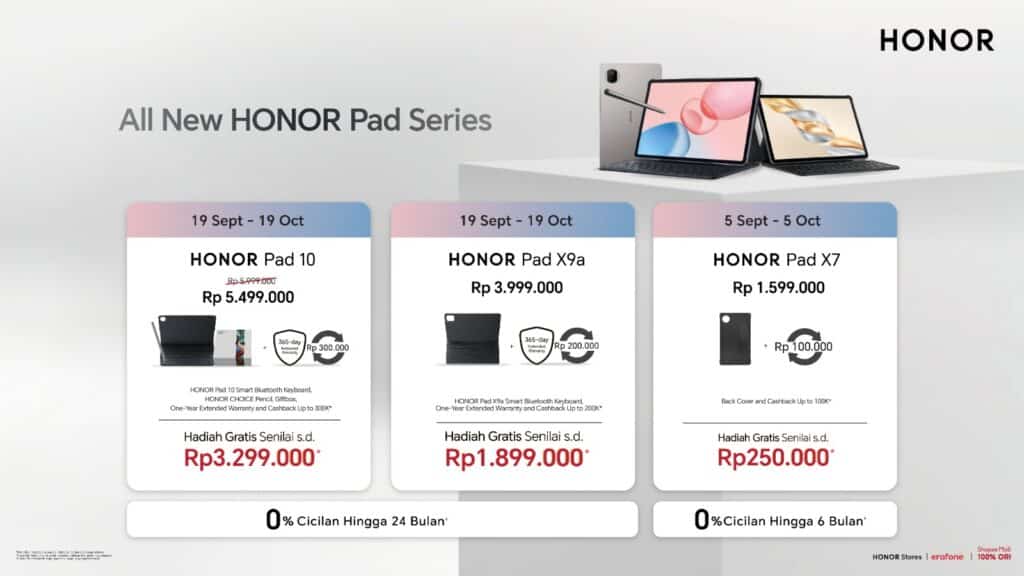 - HONOR Pad 10: Rp5.499.000 + bonus hingga Rp3,2 juta.