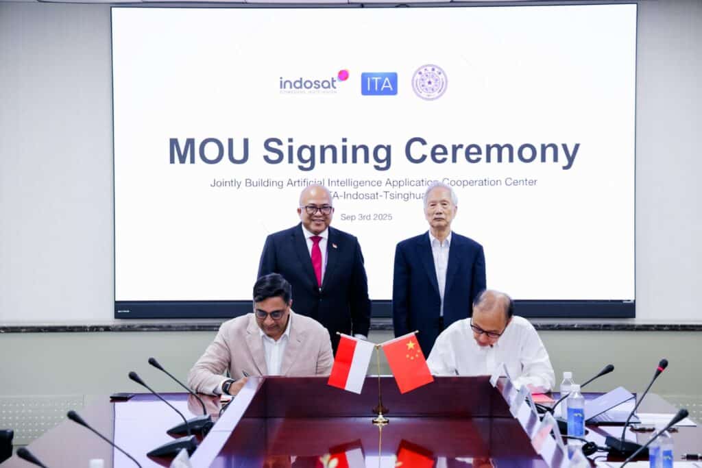 Gadgetholic – Indosat Ooredoo Hutchison (Indosat atau IOH), Indonesia Technology Alliance (ITA), dan Tsinghua University Wuxi Research Institute of Applied Technologies resmi menandatangani Nota Kesepahaman (MoU) untuk mendirikan AI Application Cooperation Center di Indonesia. Penandatanganan dilakukan di Tsinghua University, disaksikan oleh Parulian George Andreas Silalahi, Wakil Duta Besar Republik Indonesia untuk Tiongkok, dalam rangkaian acara China–ASEAN AI Ministerial Roundtable 2025.