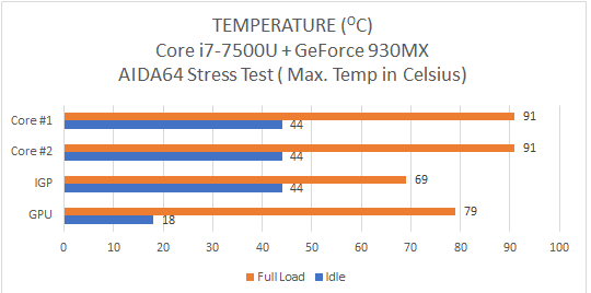Kombinasi Core i7 7500U dengan GeForce 930MX yang terdapat pada ASUS VivoBook Flip 14 TP410U mendekati 90°C pada pengujian stress test dengan aplikasi AIDA64. penulis merasa penggunaan sistem pendingin dengan kipas (HSF) merupakan pilihan tepat mengingat ASUS Vivobook Flip 14 TP410U yang dalam pengujian ini memiliki kartu grafis tambahan yaitu Geforce 930MX.