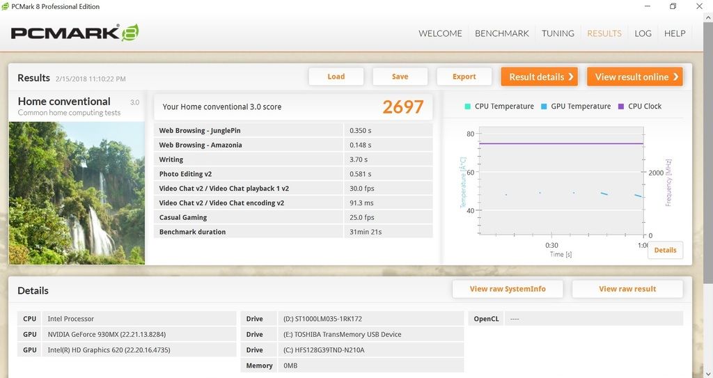 PCMark 8 Home berisi skenario pengujian yang menggambarkan aktivitas umum pada sistem PC rumahan. Skenario pengujian terdiri atas Web Browsing, Writing, Casual Gaming, Photo Editing dan Video Chat.