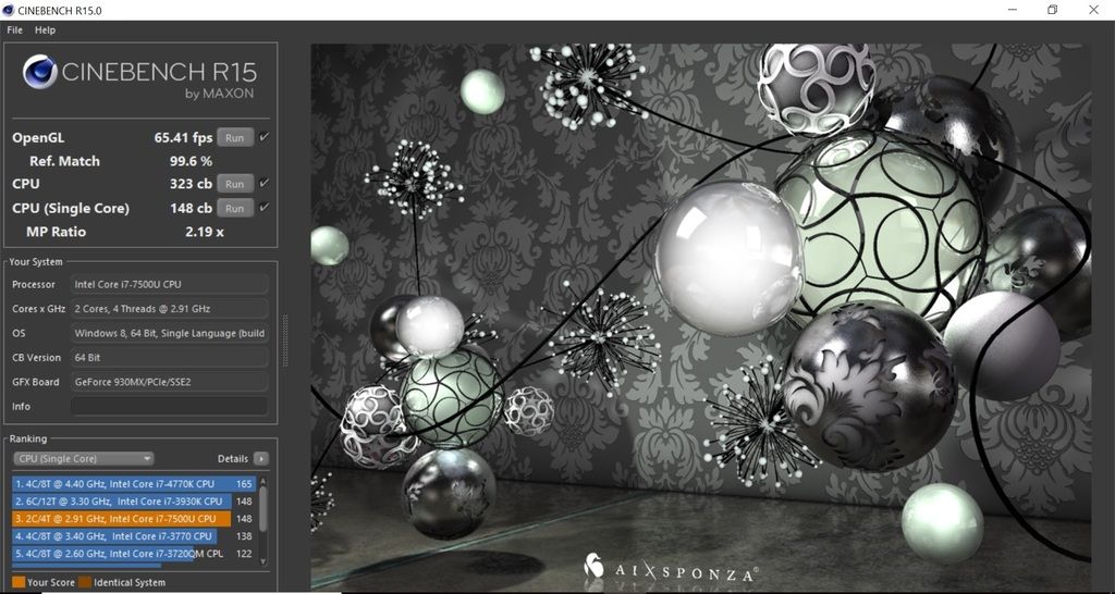 Cinebench merupakan sebuah aplikasi yang digunakan untuk menguji kemampuan prosesor dan kartu grafis dalam memproses sebuah obyek 3D atau rendering. hasil dari pengujian yang berbentuk skor mengindikasikan kemampuan prosesor dan kartu grafis. Semakin tinggi nilai skor maka semakin baik.