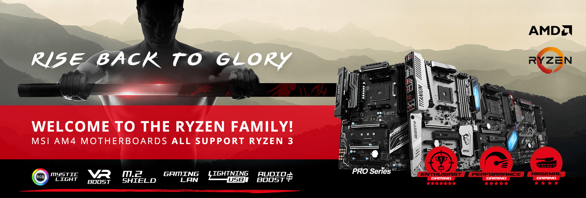 MSI A-XMP MSI, world leading in gaming motherboards design, is pleased to announce that all its X370, B350 and A320 based GAMING & PRO Series motherboards support the all-new Ryzen 3 line of processors, out of the box.