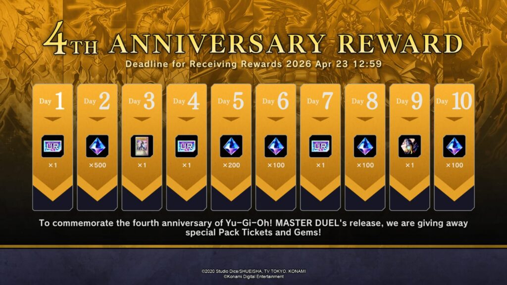 Gadgetholic – Konami Digital Entertainment merilis event ulang tahun ke-4 Yu-Gi-Oh! MASTER DUEL yang berlangsung 5 Februari – 9 April 2026 (JST). Perayaan ini menonjolkan kembalinya monster legendaris Dark Magician dalam versi ilustrasi baru eksklusif, disertai hadiah login, kartu alternatif, dan item kosmetik khusus.