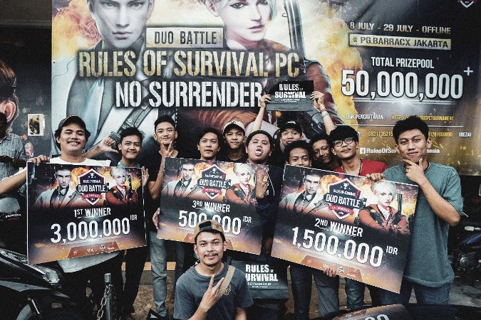 Pemenang dari setiap match berhak mendapatkan hadiah Rp. 500,000 (Juara Tiga), Rp. 1,500,000 (Juara Dua) dan Rp. 3,000,000 (Juara Pertama). Tidak perlu diragukan lagi bahwa antusias dari para player Rules of Survival PC cukup baik, walaupun pelaksanaannya hanya di kota Jakarta. Dari pihak Rules of Survival PC sendiri sudah mempersiapkan event – event berikutnya yang lebih menantang dan menarik, dengan tujuan untuk membangun ekosistem komunitas dari setiap daerah di Indonesia, bukan hanya fokus pada kota – kota besar saja melainkan merambah ke daerah – daerah yang memiliki potensi user/ player loyal.