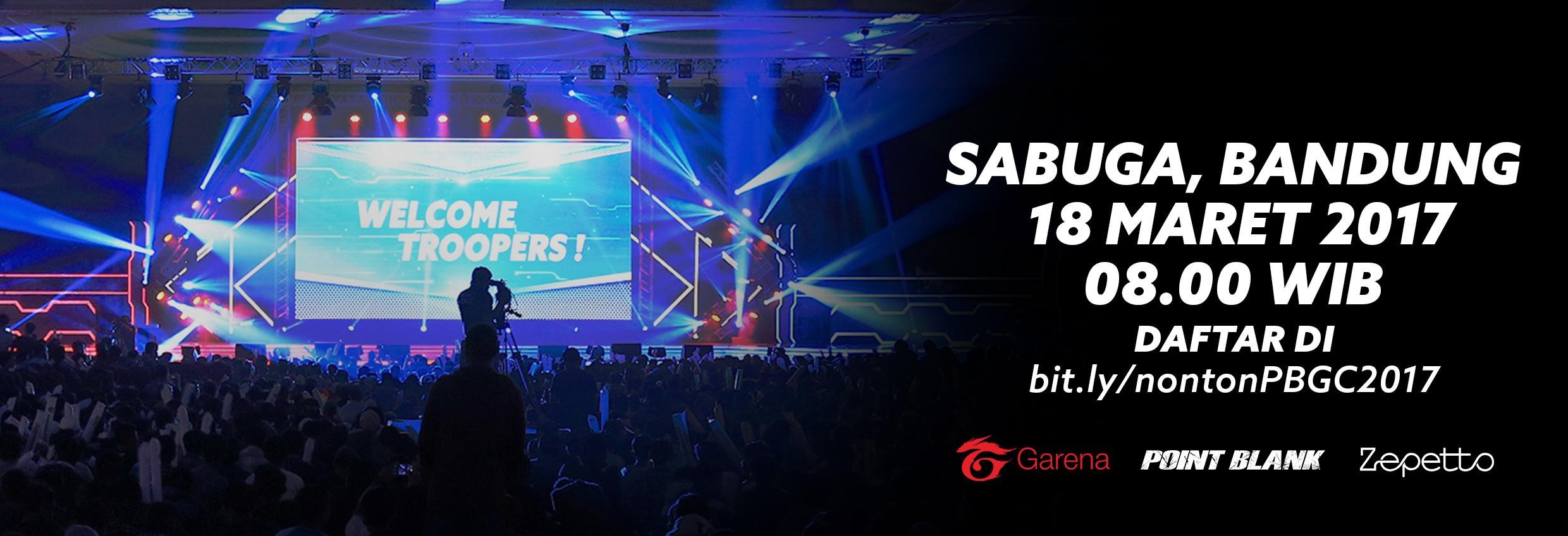 Tanpa pungutan biaya, para Troopers, sebutan untuk pemain Point Blank, dapat datang untuk menyaksikan secara langsung turnamen e-Sports yang akan diadakan di Sasana Budaya Ganesha ITB Bandung, pada hari Sabtu, tanggal 18 Maret 2017 sejak pukul 08.00 WIB. Gelaran puncak turnamen e-Sports yang akan diadakan di Bandung ini juga akan menyuguhkan hiburan dan hadiah-hadiah menarik mulai dari spesial performance Girlband Kirari, merchandise eksklusif Point Blank, sampai puluhan doorprize gaming gears dari para pendukung acara kepada para Troopers di Bandung.