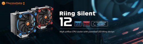 Taipei, Taiwan-March 24, 2016-Thermaltake, an industry leader in computer chassis, thermal solutions, and power supply units, has unveiled the latest Riing Silent 12 CPU cooler, designed for use with high-end RAM and motherboards. Riing Silent 12 is with PWM function which allows the motherboard to run the fan precisely at its necessary speed. This guarantees the required cooling and minimizes the noise level.A 120mm fan fitted to enhance the airflow produces impressive cooling performance with an optimized 11 fan-blade design. Hydraulic bearings for silent operation guarantee ultra-low noise. The patented LED ring maintains color and brightness uniformity, and the lighting effect is visible from all sides and angles. Available in two models: Riing Silent 12 Blue CPU cooler and Riing Silent 12 Red CPU cooler.