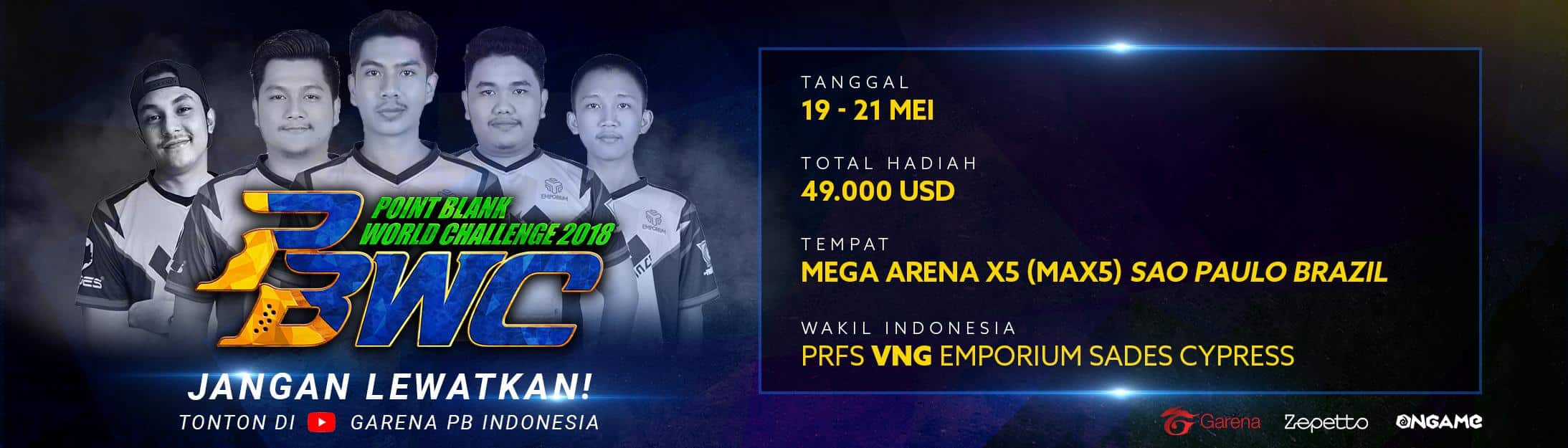 JAKARTA, INDONESIA — 16 Mei 2018 — Akhir pekan ini, bersama-sama kita akan menyambut ajang turnamen Point Blank yang paling ditunggu oleh para Troopers (sebutan pemain Point Blank), yaitu Point Blank World Challenge (PBWC) 2018. Event yang diorganisir oleh developer Point Blank, Zepetto, merupakan ajang bergengsi yang akan mempertemukan tim-tim terbaik Point Blank di dunia yang akan bertarung untuk memperebutkan total hadiah uang tunai sebesar USD 49.000 (senilai 690 juta rupiah) pada tanggal 19-21 Mei 2018 di Sao Paulo, Brazil.