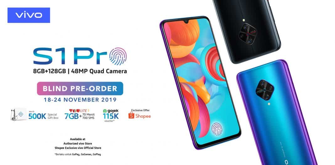 Selama masa Blind Pre-Order ini, konsumen dapat memesan vivo S1 Pro di e-commerce Shopee dengan cara membeli voucher khusus seharga Rp. 100.000,- yang selanjutnya dapat ditukarkan dengan benefit senilai Rp. 400.000,- dalam bentuk Shopee Coin, serta hadiah tambahan seperti speaker JBL, gratis berlangganan Joox selama satu bulan, juga voucher Gojek senilai Rp. 115.000,- berlaku untuk GoPay, GoGames dan GoPlay.