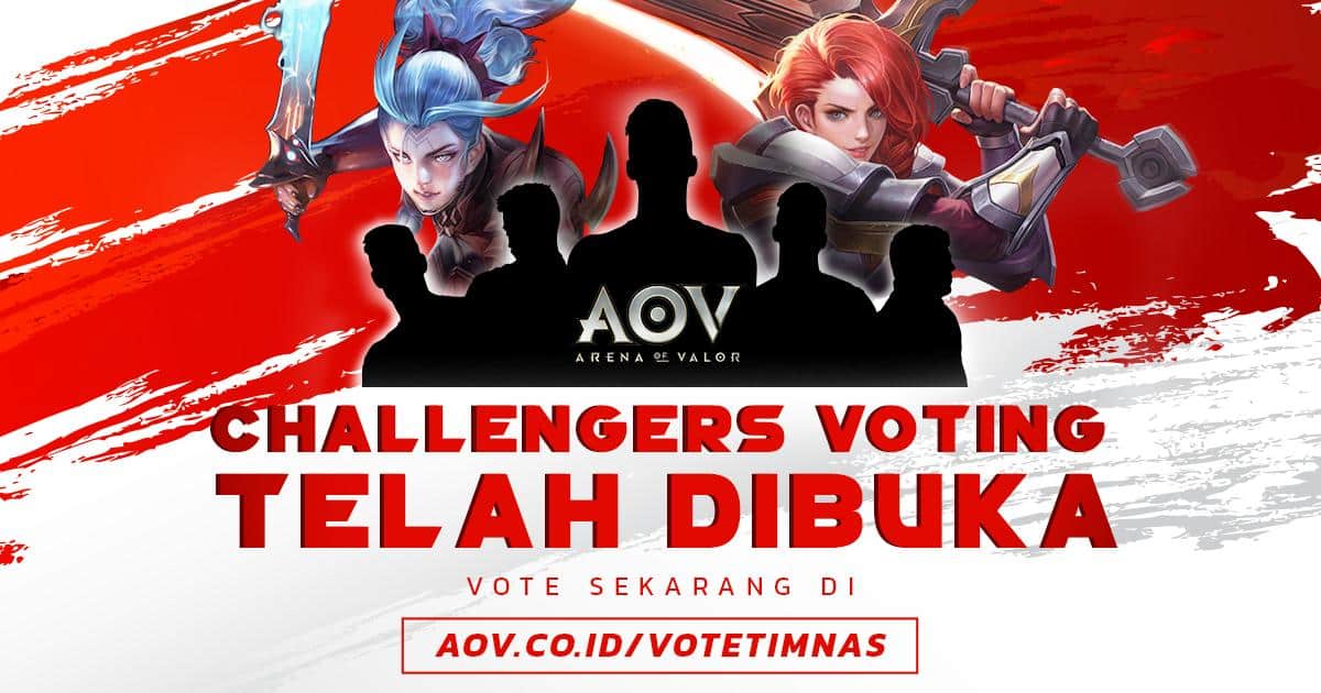 Hari ini, AOV Garena Indonesia mengajak seluruh Challengers untuk ikut berpartisipasi di dalam pembentukan Tim Nasional AOV di Asian Games 2018 melalui Challengers Voting. Voting ini akan berlangsung dari tanggal 28 Mei 2018 hingga 31 Mei 2018.